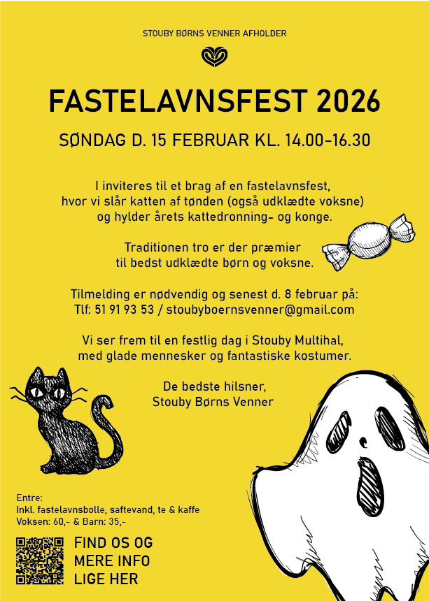 Fastelavnssøndag er hallen fuld af monstre, spøgelser, tegneseriefigurer, superhelte, pirater og prinsesser, for der holder Stouby Børns Venner fastelavnsfest i Stouby Multihus. Det er et brag af en fest, hvor katten bliver slået af tønden og kattedronninger og kattekonger bliver kronet, inden der spises fastelavnsboller.